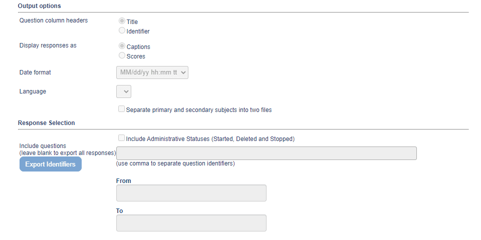 - Separate primary and secondary subjects into two files - when enabled responses for the primary subject will be added to one file and responses for the secondary subject will be added to a second file.