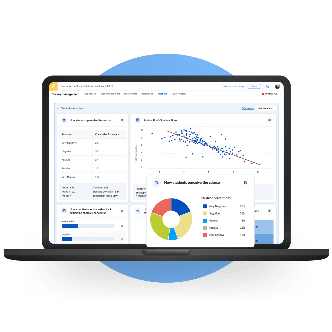 - Interactive charts, graphs, and response breakdowns