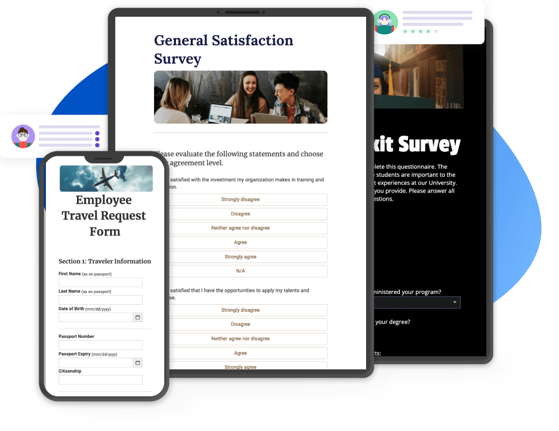 Example uses: feedback requests, employee onboarding forms, event registration, faculty reflections
