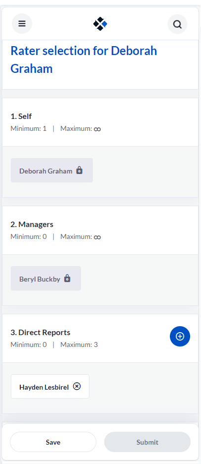 Group members that are grayed out with a lock symbol have been preselected for you based on your organizational structure. In this example, the 'Self' and 'Managers' groups have been preselected for you.