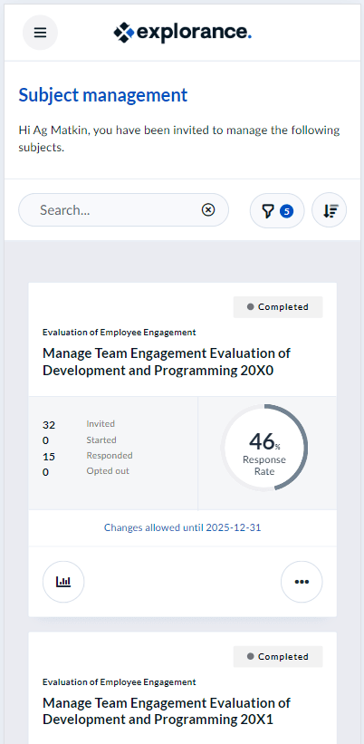 - Click the Subject Management launcher. A new page will appear where you will see all your evaluations represented as tiles.
