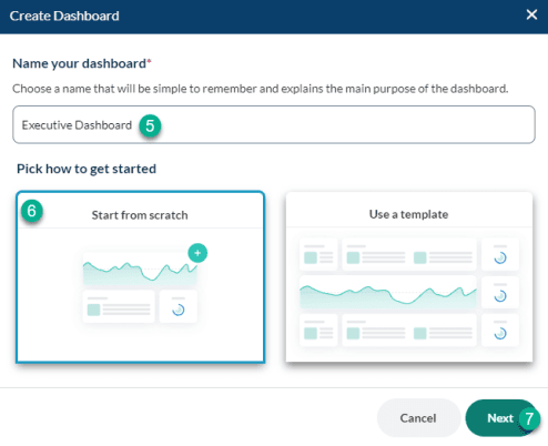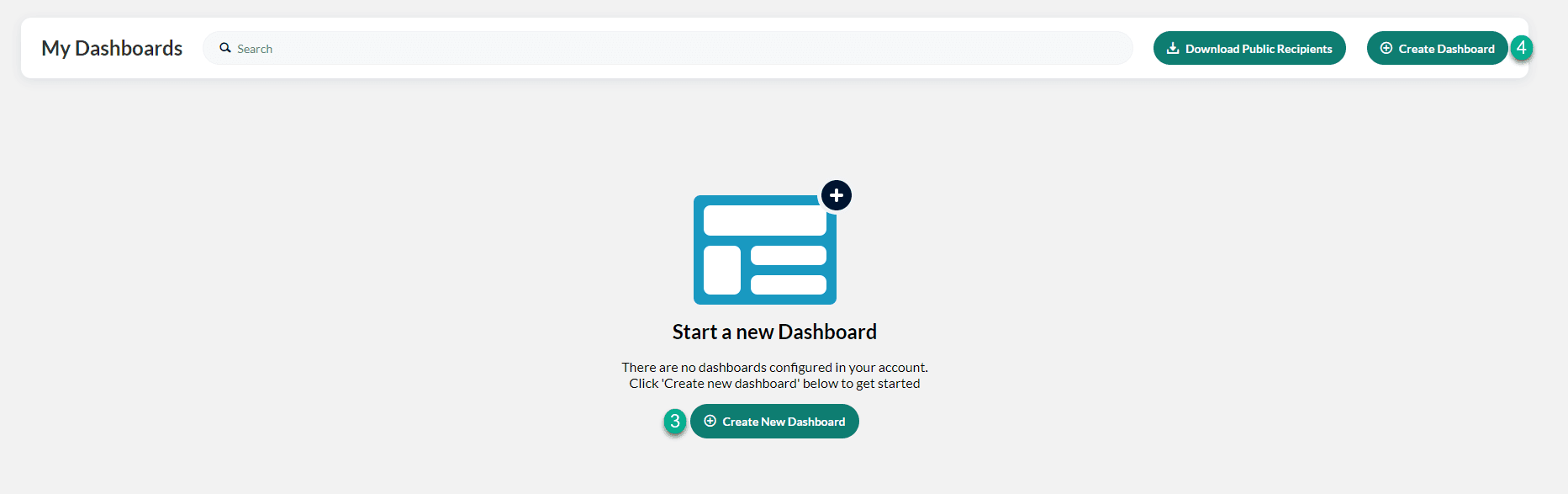 - If you already have dashboards displayed on your screen, click on the Create Dashboard Button.