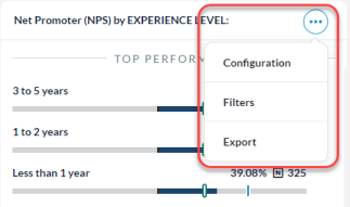 - Configuration : allows the user to see how the widget was configured (e.g.: Date Range, Display, Report By, etc.).