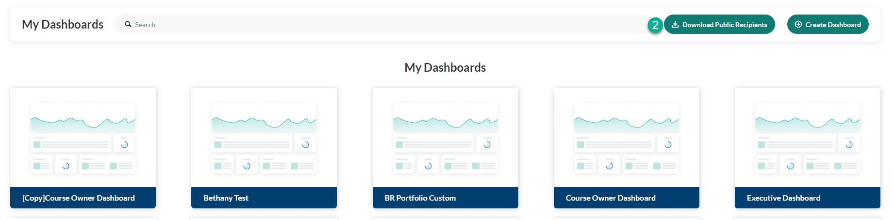 - This dashboard recipient will be added to the bottom section of the Share Dashboard pop-up window. The date each recipient last viewed the dashboard will also be displayed. Recipients who have received a dashboard by email will be labeled as Public Recipients.