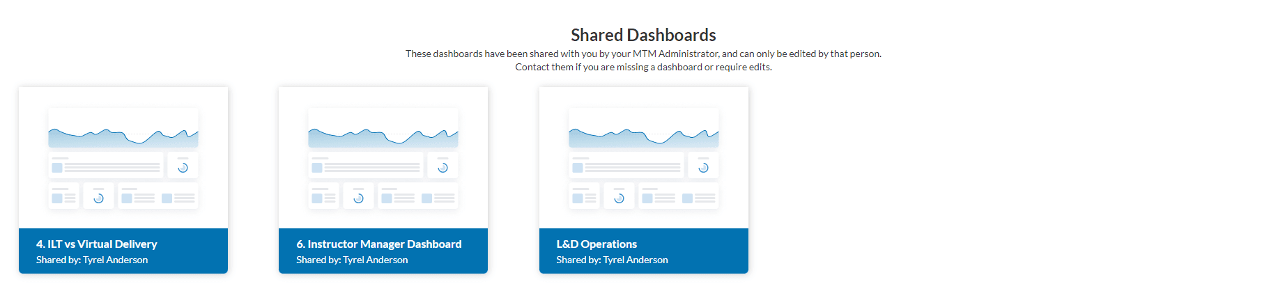 The dashboard will then be available in the recipient’s MTM account on their dashboard homepage under Shared Dashboards.